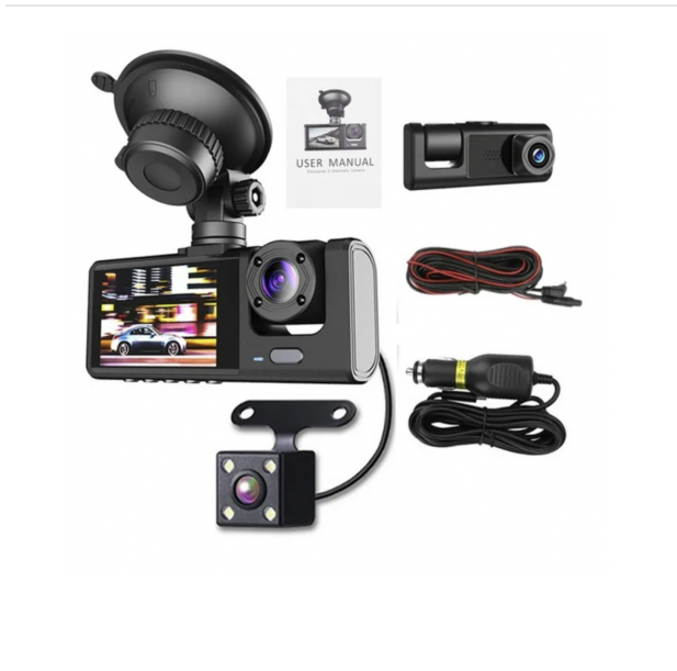 📦 INCLUYE: Cámara, cargador de auto, cámara trasera, cables, soporte de ventosa y más.